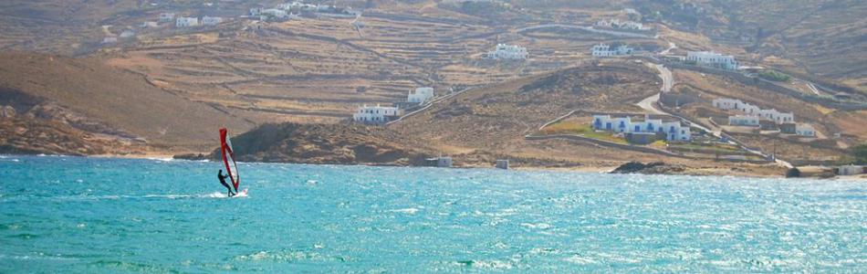 This is a Northern beach at Panormos Bay with crystal clear waters and soft sand. It is also considered as the best waveriding and windsurving beach of the island. When you are on the western side of the beach the place looks like a lagoon, especially when there is no wind. The beach is divided in two by some rocks that go all the way down to the seashore. The remains of a Neolithic settlement that dates back to 4.500 B.C. have been found on the rocks. Also, it is possible that the tomb of Aiantas Lokros, the hero of the Trojan war, lays there.